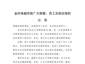 9月12日晚,河南金好來超市發布《致廣大顧客、員工及供應商的公告》。公告稱,近期,因公司調改升級導致資金緊張,出現了員工工...