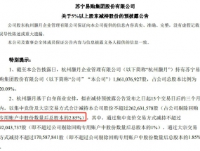 9月22日,蘇寧易購集團股份有限公司(ST易購)發布公告,披露了杭州灝月企業管理有限公司作為持股比例超過5%的股東,計劃減持股...