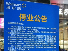 近日,沃爾瑪永川渝西廣場店發布停業公告稱,該店將于2025年9月21日起停止營業。該店關閉后,沃爾瑪在重慶仍有6家大賣場和2家山...