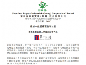 9月21日,百果園集團宣布,公司與配售代理簽訂配售協議,將以每股1.17港元的價格發行2.795億股H股。此次發行完成后,配售股份將...
